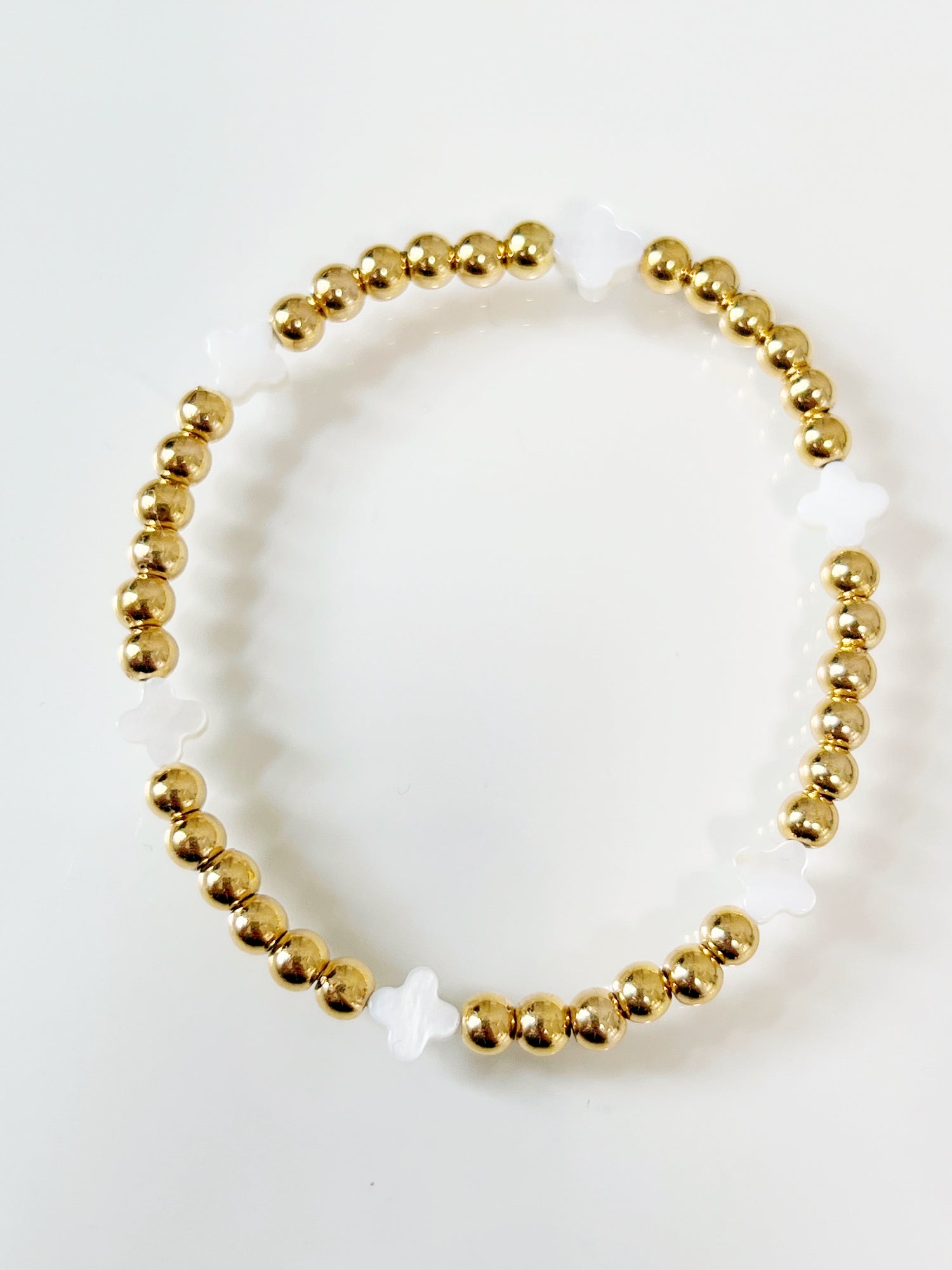 18k Gold Filled balls bracelets stretch made with shells white clovers shape