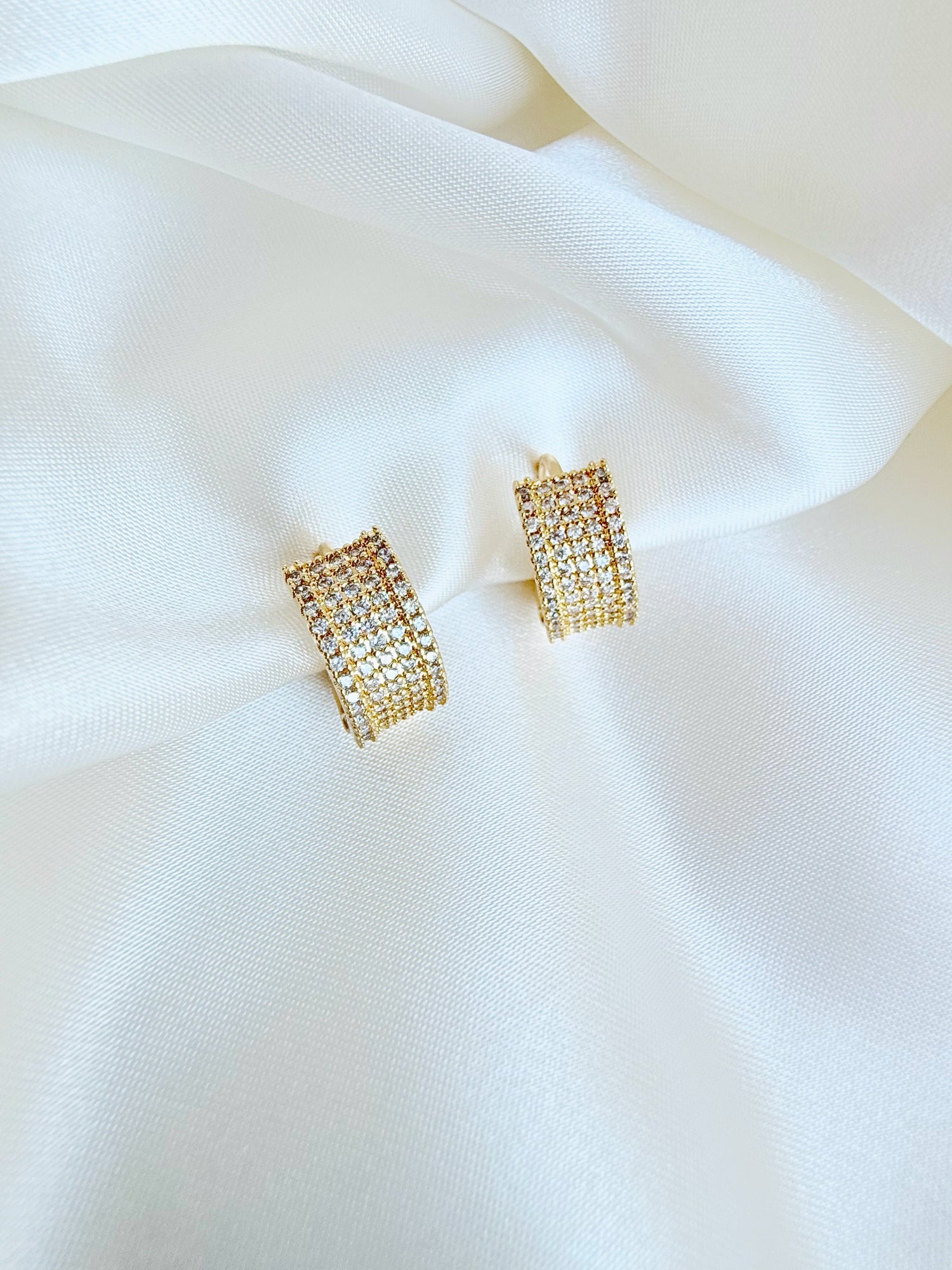 Luxury hoops adorned with AAA zirconia, 18K gold filled. Exquisite, lightweight design with a radiant shine for an effortlessly sophisticated look.