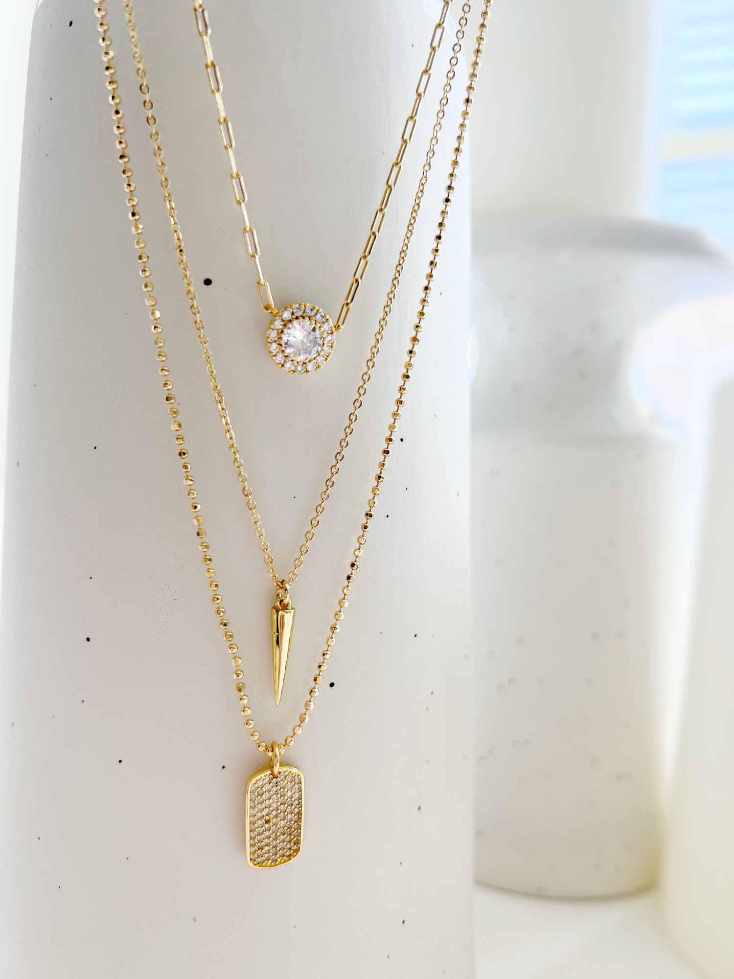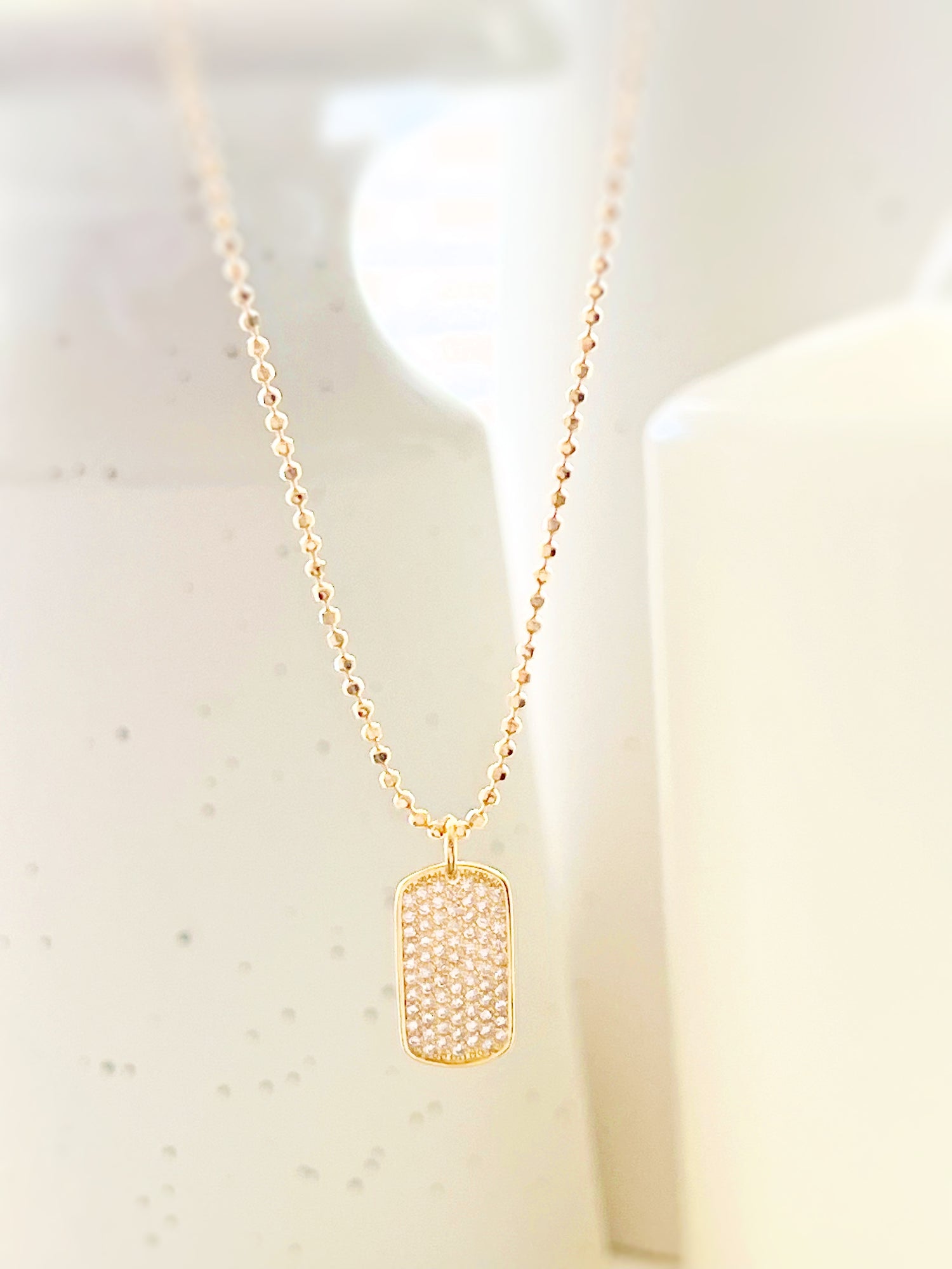 18k Gold filled necklace with Cubic Zirconia tag pendant