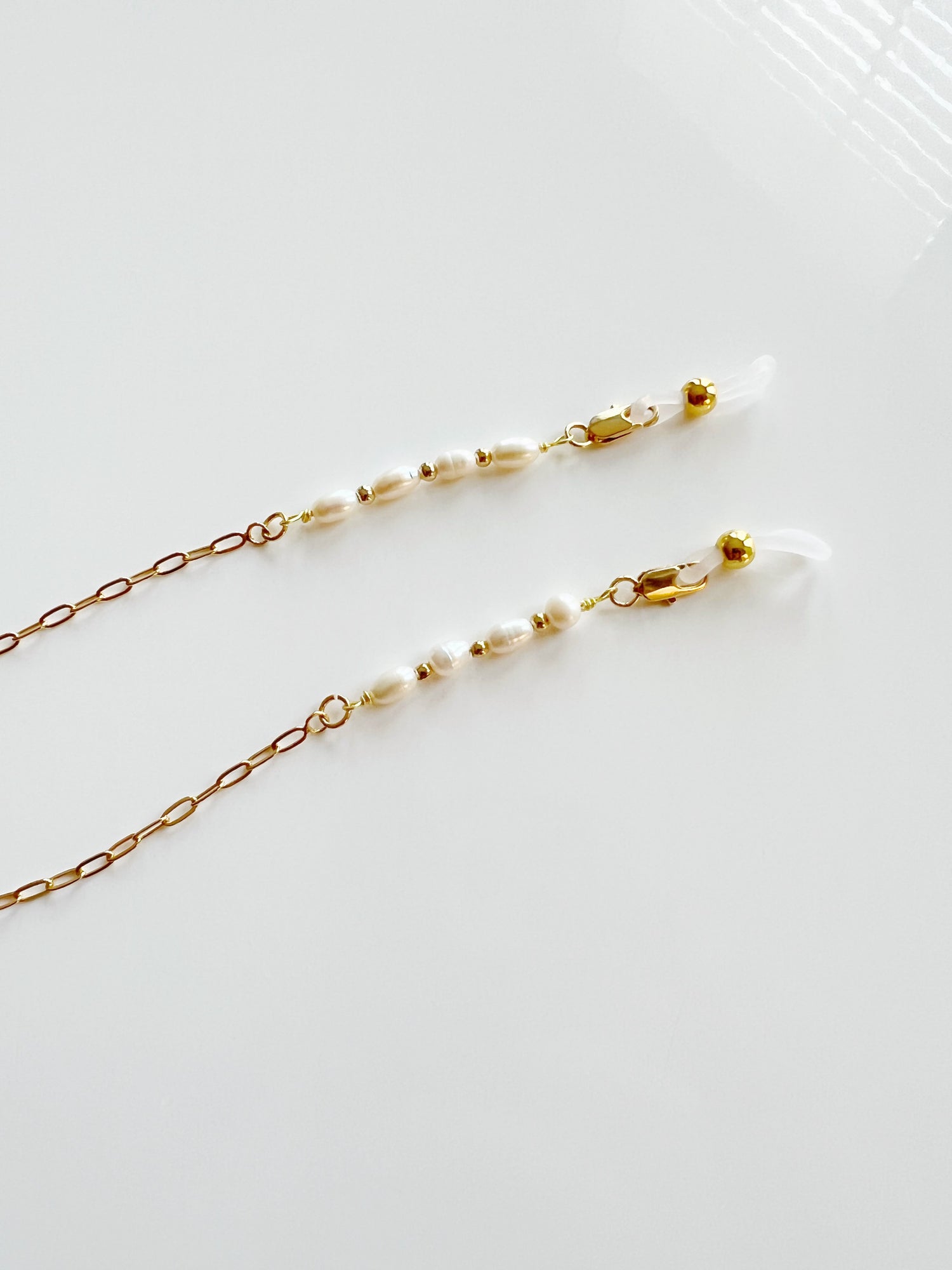 Handmade dainty Sunny cord made with fresh water pearl and 18k gold filled paper clip link chain