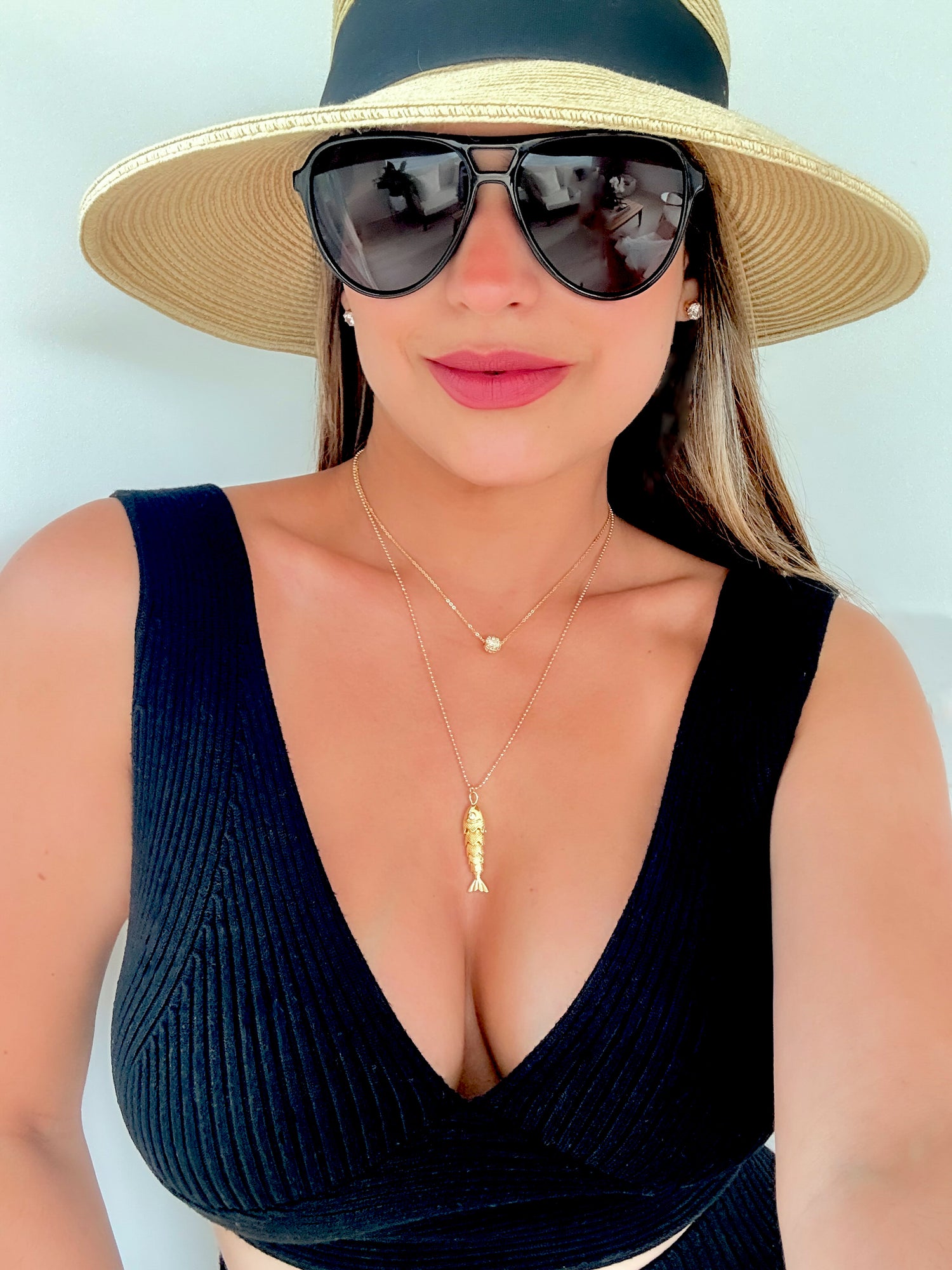 This playful fish pendant necklace is the perfect sunny-day accessory you’ve been looking for. Its charming design adds a fun, radiant touch to your beach days, vacations, or everyday summer looks.