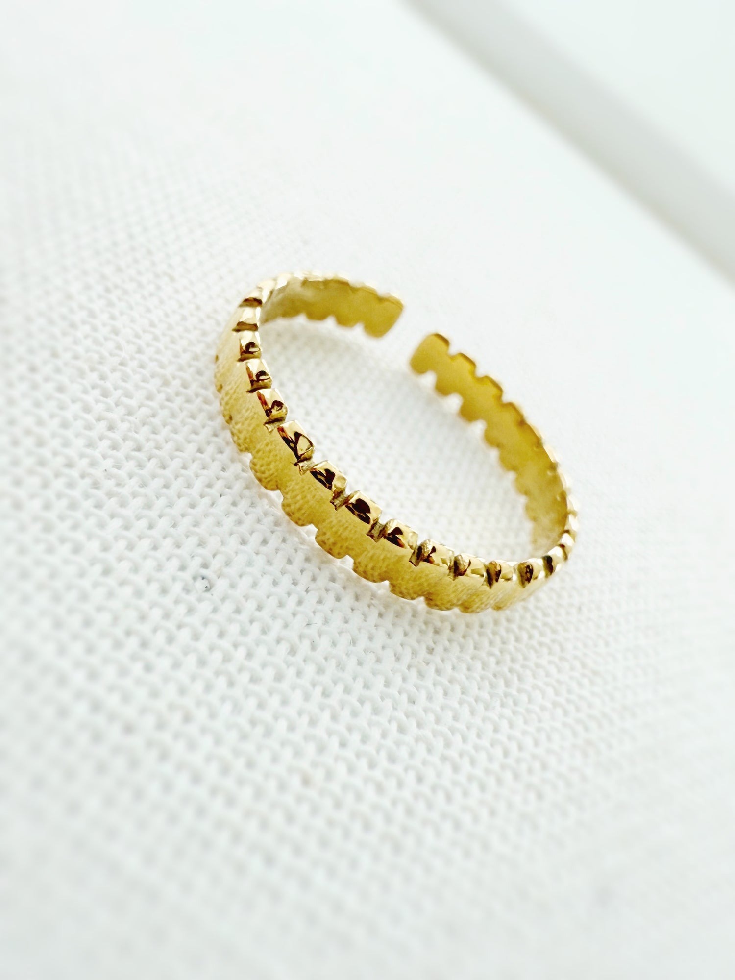 Dainty and adjustable, these stackable rings are crafted from stainless steel with a durable gold plating. Wear them solo or mix & match for a golden touch of color and charm.